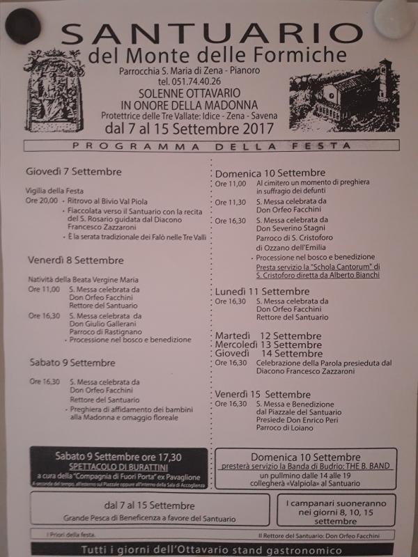 la festa sacra durante l’ottavario ha un programma intenso (che trovate in allegato), ricordo in particolare i campanari nei giorni 8 e 10, e la processione nel bosco del 10 settembre.