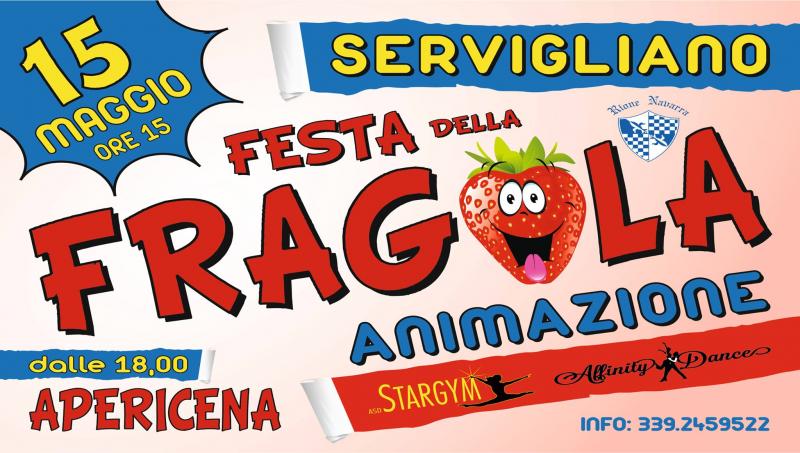 Domenica 15 maggio in piazza Roma a Servigliano dalle ore 15:00 fino a tarda sera, si svolgerà come di consueto, ormai da molti anni la FESTA DELLA FRAGOLA.