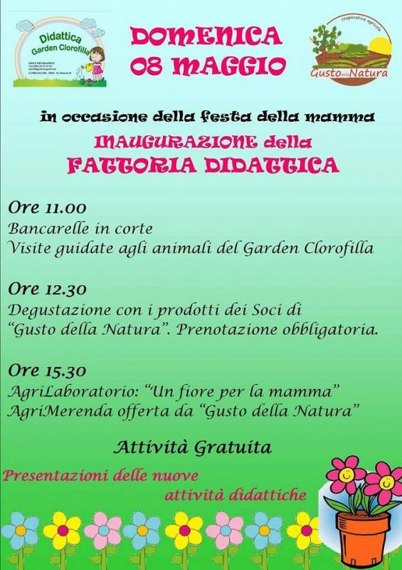 Per la Festa della Mamma dell'8 Maggio, il Garden Clorofilla insieme alla Cooperativa Agricola "Gusto della Natura", hanno creato questo bellissimo evento "INAGURAZIONE DELLA FATTORIA DIDATTICA"