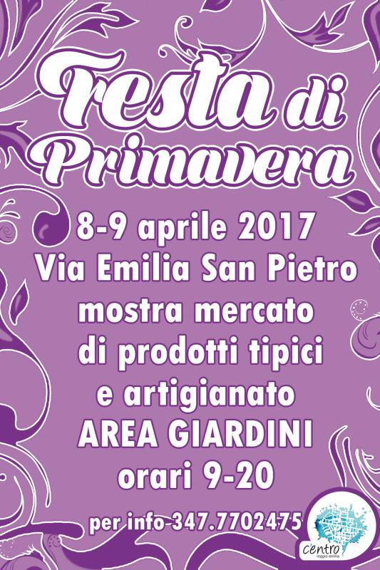 L'8 e il 9 aprile 2017 si terrà a Reggio Emilia, in via Emilia San Pietro, la nuova edizione della Festa di Primavera con la mostra mercato di prodotti tipici e artigianato.