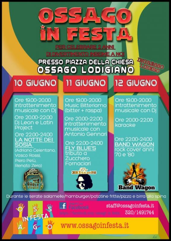 Il 10-11-12 Giugno 2016 si svolgera la Seconda Edizione di Ossago in festa.