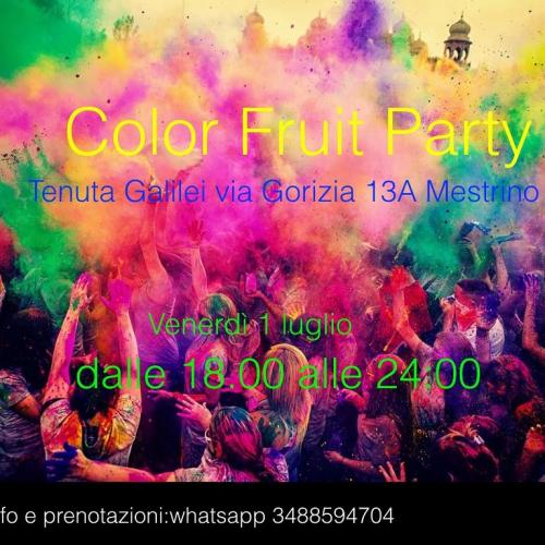 Color Fruit Party è un dance party presso Tenuta Galilei basato sul lancio di sacchettini di colore e buona musica accompagnato da consumazioni di frutta fresca.