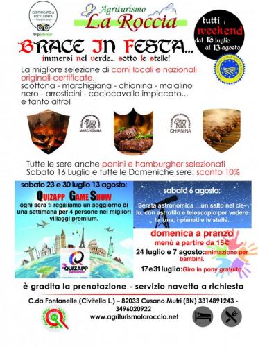 5 weekend “freschi” e tematici all’insegna della Brace a vista: scegliete la vostra specialità e noi ve la cuciniamo a vista, servita a tavolo con un ottimo bicchiere di vino o con birra a scelta. Solo carne IGP CERTIFICATA.