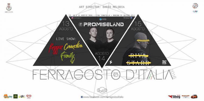 Dal 13 al 15 agosto 2016 nella baia di Marina di Butera (CL), presso Panama Beach, ovvero in Contrada Tenutella / Piano Marina, prende vita la sesta edizione di Ferragosto d’Italia. L’evento, da sempre dedicato alla musica dance, coinvolge ogni estate migliaia di giovani: nel 2015, quando le serate erano due, hanno ballato ben 30.000 persone. L’ingresso anche quest’anno è come sempre gratuito. L’edizione 2016 inizia il 13 agosto con Reggae Connection Family, un evento scatenato in cui vanno sul palco Reggae Connection Band, Helettrik e Milk. Le due serate più attese sono poi quella del 14 agosto e del 15 agosto, quando si esibiscono alcuni dei talenti italiani più richiesti nel mondo per quel che riguarda l’universo del clubbing. Il 14 infatti dietro al mixer ci sono i romani Promise Land, mentre il 15 sul palco sale il campano Riva Starr. Quest’ultimo è una vera leggenda campana della house e fa ballare il mondo dalla sua base londinese. Pure i Promise Land, originari di Roma, sono un punto di riferimento a livello internazionale. Hanno pubblicato dischi su label come Subliminal records, Spinnin records, Flamingo, Size e remixato un capolavoro assoluto come "Don't you worry child" degli Swedish House Mafia. Il programma musicale si completa con la presenza di alcuni degli artisti più importanti della zona. Il 14 con i Promise Land in console ci sono Vincenzo Callea (TI.PI.CAL) ed Human Phat, mentre il 15 con Riva Starr arrivano Daniele Tignino (TI.PI.CAL) e Luca Lento.