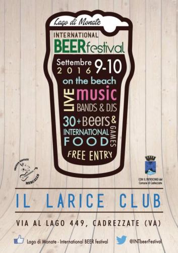 9 - 10 Settembre - Lago di Monate International BEERfestival - Prima edizione di un festival che vede come protagonista una selezione di + di 30 birre premium, di cui 8 alla spina con 8 abbinamenti culinari internazionali, musica live e giochi a tema in una delle location più suggestive del Lago di Monate, la spiaggia "Il Larice Club” di Cadrezzate ospiterà l’evento.