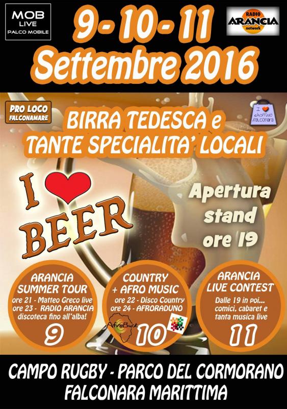 Ecco l'evento ufficiale per la festa dell'anno! Vi aspettiamo dal 9 al 11 Settembre al Campo da Rugby al Parco del Cormorano di Falconara marittima per gustare tanta buona birra e ottimo cibo preparato dai migliori cuochi, ovviamente in compagnia della musica di Radio Arancia! Non si può assolutamente mancare!