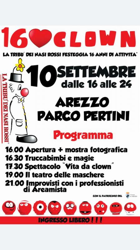 La Tribù dei Nasi Rossi Onlus, Associazione di Clown-Dottori volontari festeggia i suoi 16 anni di attività. Presente nei reparti di Pediatria, Oncologia, Radioterapia dell'ospedale S. Donato di Arezzo ed attiva nella promozione della cultura del volontariato ormai da anni nella città, ha organizzato una giornata per festeggiare con la cittadinanza. Un'occasione per grandi e piccini di assistere a spettacoli, giocare ed indossare un naso rosso, tutto gratuito!