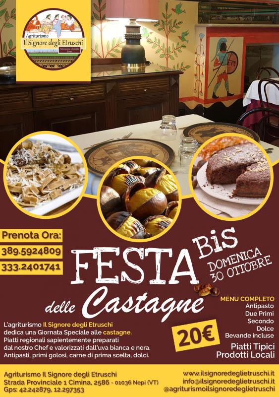 L’evento ha come location la splendida cornice dell’agriturismo Il Signore degli Etruschi a Nepi (VT). Organizzato per celebrare la castagna, prevede un pranzo dal Menù Speciale realizzato con prodotti freschi e genuini.