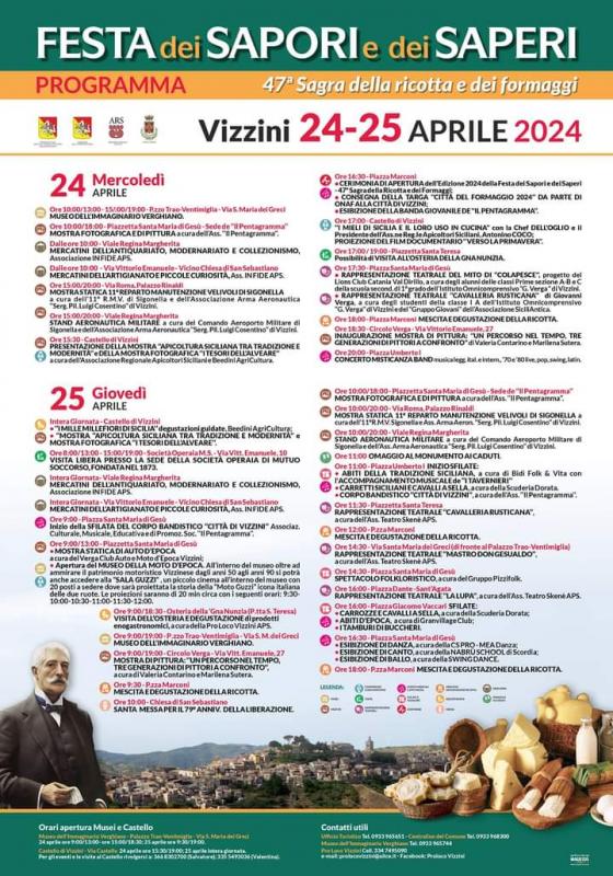 A Vizzini, il 24 e 25 Aprile, la tradizionale Sagra della Ricotta e del Formaggio divenuta ormai Festa dei Sapori e Saperi
