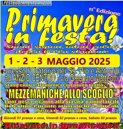 Primavera in Festa ad Anzio prevista per il 25, 26 e 27 aprile 2025, viene rimandata a venerdì 2 sabato 3 e domenica 4 maggio 2025