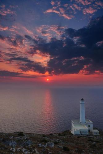 Il Faro di Punta Palascìa, detto anche di Capo d’Otranto, si trova nel punto più a Oriente d’Italia, a 40°7’ di latitudine nord e 18°31’ di longitudine est. Situato nella zona più bella e incontaminata di Otranto, tra Punta Facì a nord e la Baia di Sant’Emiliano, con la sua torre e l’isolotto, a sud, si raggiunge percorrendo la litoranea che conduce a Santa Cesarea.