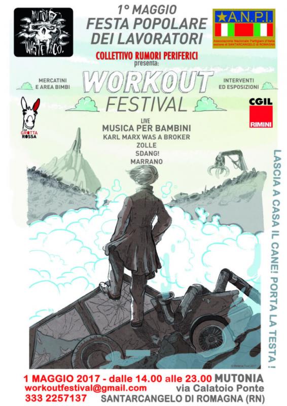 Collettivo Rumori Periferici, GOTR booking & promotion,Mutoid Waste Company & Anpi Santarcangelo Di Romagna sono felice di presentare la terza edizione del Workout Festival del 1° Maggio. Quest’anno l’evento verrà ospitato “in casa” dei Mutoid a Santarcangelo di Romagna (RN).