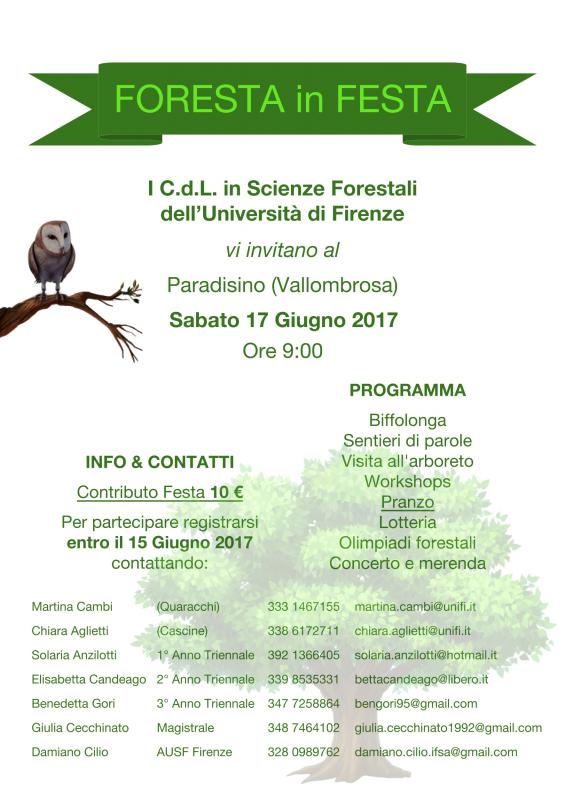 Foresta in Festa, organizzata dal C.d.L in Scienze Forestali dell'Università di Firenze, che si terrà a Vallombrosa il prossimo 17 giugno.