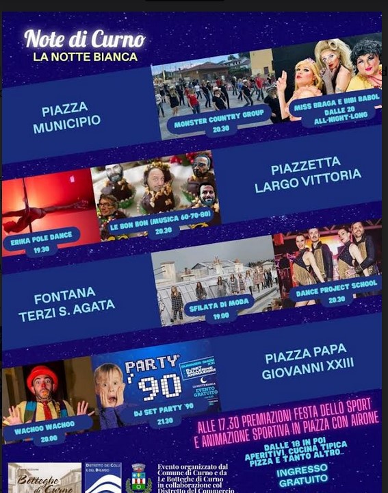 Una serata sotto le stelle, dedicata ad adulti, famiglie, ragazzi e bambini che, accompagnati dal suono della musica, tra negozi, attività e buon cibo, potranno passeggiare e godersi la bellissima cornice del centro di Curno.