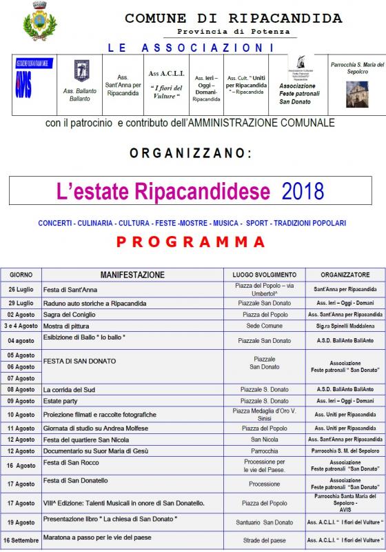 Anche quest'anno Ripacandida in Festa per tutta l'estate con una lunga serie di manifestazioni.
