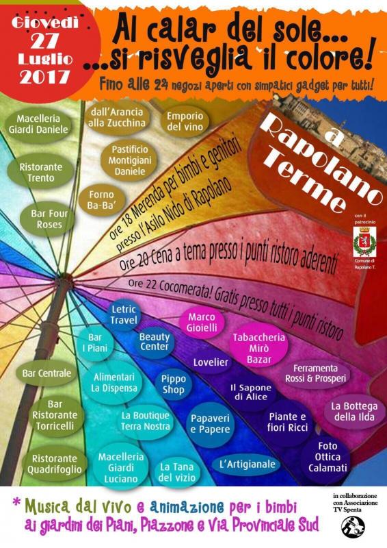 “Al calar del sole… si risveglia il colore”. Rapolano Terme, giovedì 27 luglio, si tinge a festa per la sua seconda ‘notte bianca’.