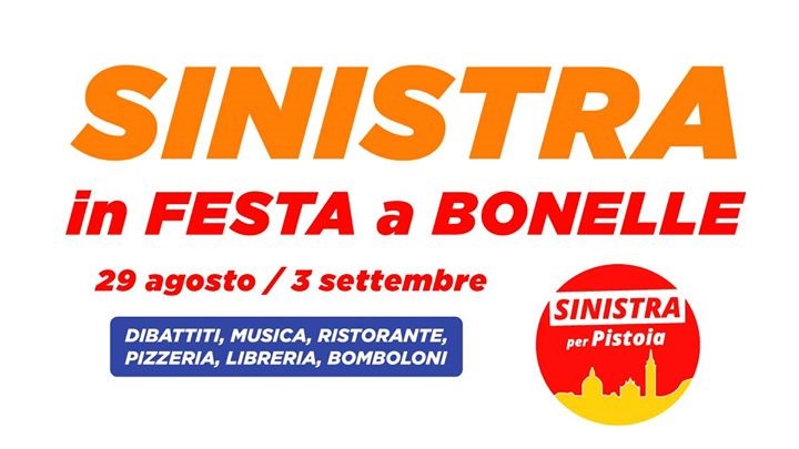Prende il via domani, martedì 29 agosto, la Festa di Sinistra per Pistoia, in programma al circolo ARCI di Bonelle (via Bonellina 235).