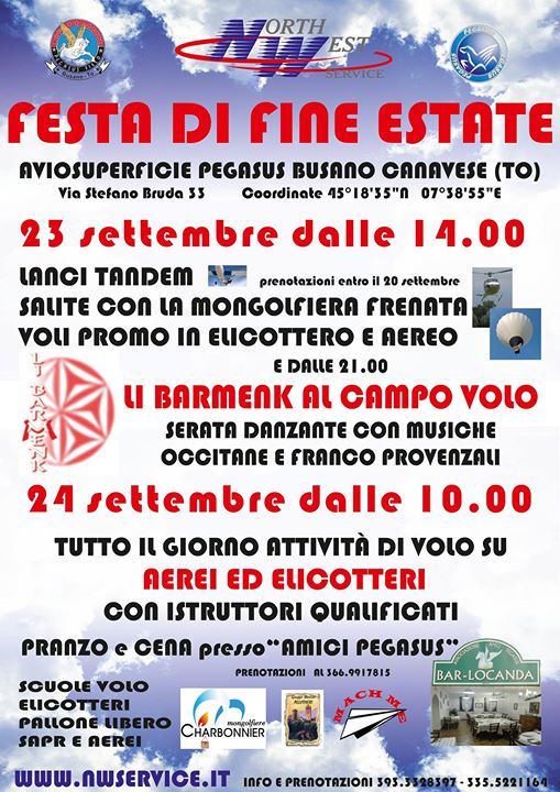 NB: Per i lanci in paracadute serve prenotare entro il 20 settembre.