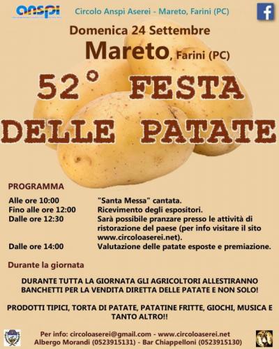 Domenica 24 Settembre 2017 si svolge la 52° edizione della Festa Delle Patate a Mareto, frazione del comune di Farini (PC)