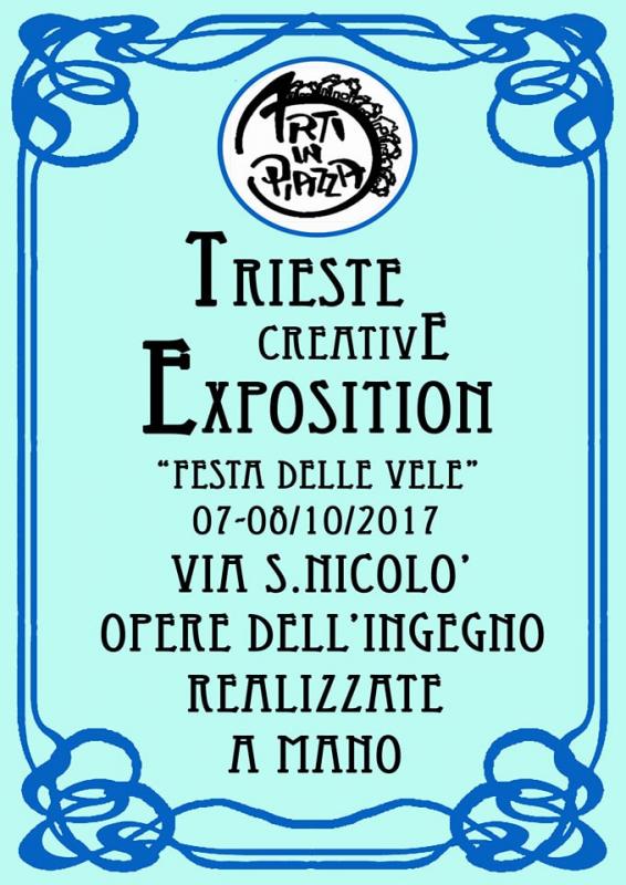 Un'esposizione di arte creativa dedicata all'ingegno artistico nelle sue più svariate forme e materiali pensata per i triestini e per i numerosi turisti in visita alla città in occasione della Barcolana nelle giornate del 7 e 8 ottobre 2017 dalle ore 8 alle ore 20. Si intitola "Festa delle Vele" l'evento a ingresso libero, organizzato per la prima volta quest'anno dall'associazione Arti in Piazza in via San Nicolò che animerà il centro storico della città con una trentina di espositori che presenteranno le proprie creazioni artistiche fatte rigorosamente a mano con passione e dedizione (sculture con minerali, pittura su pietra, cucito creativo, oggetti creati con resine e materiali poveri o riciclati). Ma non solo: anche in questa occasione, dopo il grandissimo successo ottenuto con la I “Festa d'Agosto” svoltasi a cavallo di Ferragosto in Piazza Piccola e il Sottoportico del Comune di Trieste, per offrire al pubblico un'immagine di Trieste particolarmente suggestiva, i soci saranno vestiti a tema Liberty, rievocando il clima mitteleuropeo della Trieste di quegli anni. L'evento si svolgerà in una location decorata in maniera originale e accurata, con addobbi ispirati al mare, che saprà stupire i visitatori creando una particolare atmosfera d'allegria.