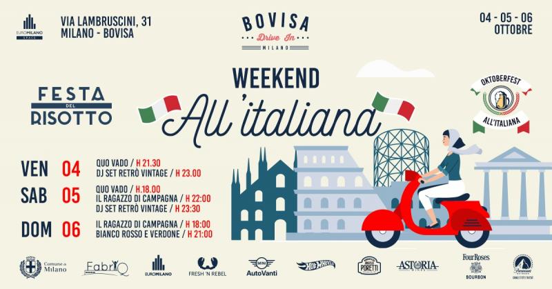 La Festa del piatto tipico Milanese, una tre giorni di degustazioni di risotto, birre italiane, giochi per adulti e bambini, mercato agricolo a filiera corta, il mercatino del Bagagliaio, proiezioni al Drive-In di film cult italiani, spettacoli e musica dal vivo, alla scoperta della cultura eno-gastronomica, agricola e cinematografica italiana.