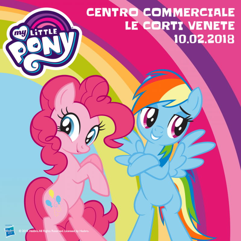 Sabato 10 Febbraio dalle 15 alle 19 i protagonisti di MY LITTLE PONY, Rainbow Dash e Pinkie Pie volano al Centro Commerciale Le Corti Venete di Verona per vivere un pomeriggio magico e festeggiare un carnevale Ponico.