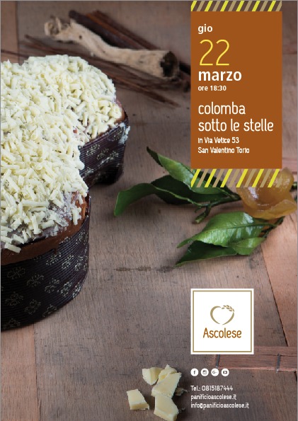 Giovedì 22 marzo, ore 18:30, appuntamento a San Valentino Torio (SA) per “Colomba sotto le stelle”, la festa dell’artigianale Ascolese tra degustazioni dolci e salate, musica e animazione per i più piccini per una serata pre-pasquale all'insegna del gusto e del divertimento…