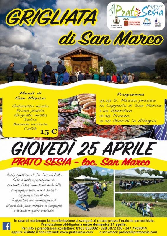 La Pro Loco di Prato Sesia vi invita a partecipare alla consueta festa immersa nel verde della campagna pratese, dove è sorta la cappella di San Marco.