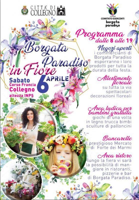 Sabato 6 aprile a Collegno (nella centrale location di Corso Francia, altezza Inps) nell’ambito della manifestazione “Borgata Paradiso in fiore”, organizzata dal Comitato Esercenti Borgata Paradiso presieduto da Sandra Tirelli.