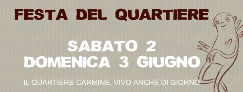 La prima edizione di una festa che prevede una moltitudine di eventi adatti a tutti e tutte, realizzati grazie al contributo di associazioni, gruppi del quartiere, esercenti, bar, ristoranti, artisti e abitanti, si vuole far vivere lo storico quartiere del Carmine la sera e il giorno con iniziative culturali, musicali e di socialità.