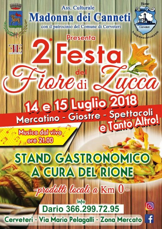 2a edizione della FESTA DEL FIORE DI ZUCCA. Mercatino, musica, intrattenimenti e tantissimi fiori di zucca fritti.... non mancate!!! il 14 e 15 Luglio 2018 - Via Pelagalli CERVETERI (RM).