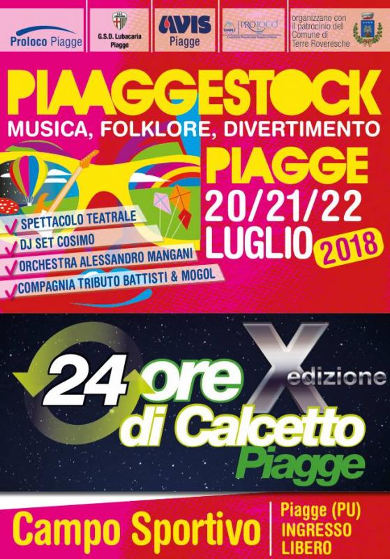 Musica, folklore, divertimento: tre ingredienti per altrettante super serate. Il campo sportivo di Piagge (Terre Roveresche), ospita il 20, 21 e 22 luglio ‘Piaaggestock’, l’evento clou dell’estate, organizzato dalla Pro loco, Gsd Lubacaria, Avis e Unpli provinciale, con il patrocinio del Comune di Terre Roveresche. Una miscela di appuntamenti, un programma ricco e variegato per tre serate sotto le stelle dal divertimento assicurato. E non mancano le novità. Si partirà venerdì 20 con l’apertura degli stand gastronomici che proporranno un ampio e prelibato menù, anche vegetariano, annaffiato dai migliori vini locali. La serata si animerà con lo spettacolo teatrale ‘Pronti a tutto’, organizzato dal Comune. Sul palco il gruppo teatrale ‘Recremisi’. In un crescendo costante di sentimenti, la commedia alterna momenti comici ad altri di riflessione e analizza con umanità e sensibilità l'attaccamento ai soldi e il cosa e quanto si è disposti a fare pur di guadagnarne, fino ad arrivare ad un finale inconsueto. Dal teatro alla musica: alle 23 l’atmosfera s’accenderà con Dj set Cosimo. Musica per tutti i gusti, da ballare e ascoltare. La giornata di sabato scatterà all’insegna dello sport: alle 17, presso il campo sportivo, dove verrà allestito un campo da calcetto in erba sintetica, la decima edizione della 24 ore di calcetto, Memorial ‘Pamela Sbrega’. L’originale torneo avrà inizio sabato alle 18 e terminerà domenica alle 21. Ai partecipanti saranno offerti: pasta party, cocomerata e buffet finale. Saranno premiate le prime tre squadre. E non mancherà il divertimento per i più piccoli: dalle 19 gonfiabili di Mc eventi. A seguire l’apertura degli stand gastronomici, quindi l’esibizione della scuola di ballo ‘Forum dance’. Si ballerà poi con l’orchestra Alessandro Mangani. Ricchissimo il programma di domenica. Alle 17 la Santa Messa. Per i bambini i gonfiabili di Mc eventi. Dopo aver degustato le tante specialità gastronomiche preparate dai volontari della festa, spazio al concerto della ‘Compagnia Tributo Battisti e Mogol’. In serata anche le premiazioni della 24 ore di calcetto. Maggiori informazioni: pagina Facebook Pro Loco Piagge. Ingresso libero.