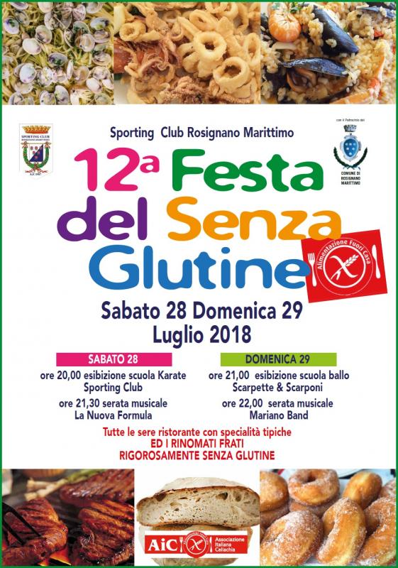 L'A.S.D. Sporting Club Rosignano Marittimo, con il Patrocinio del Comune di Rosignano Marittimo organizza, la 12a edizione della Festa del Senza Glutine.
