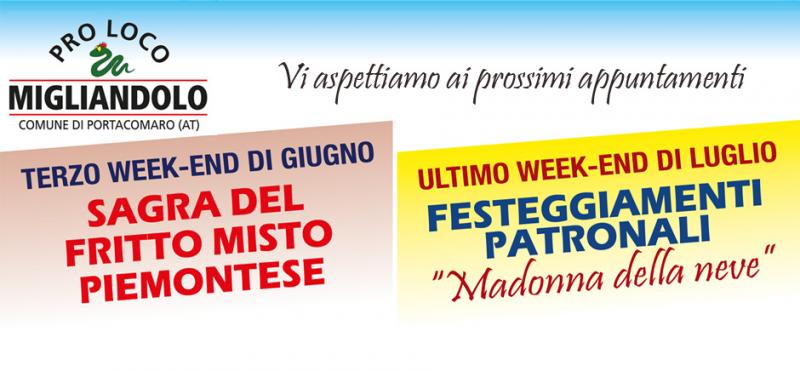 A Migliandolo frazione del comune di Portacomaro in proviancia di Asti si svolge la Festa Patronale della Madonna della Neve dal 30 al 31 Luglio 2022