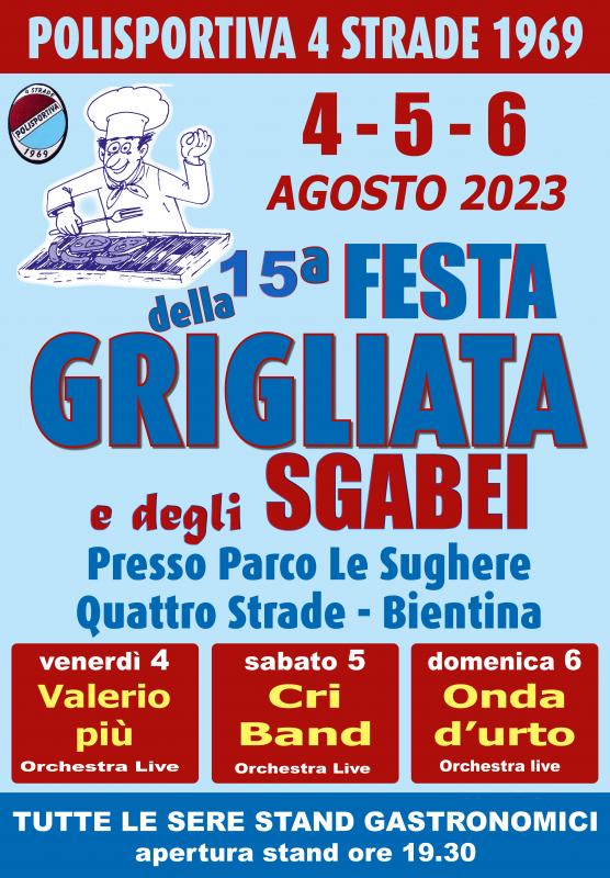 A Bientina in provincia di Pisa si svolge dal nei giorni 4, 5 e 6 agosto 2023 la sagra della grigliata e degli sgabei al circolo ricreativo il risorgimento.