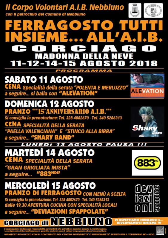 La Squadra di Volontari AIB e Protezione Civile di Nebbiuno hanno il piacere di invitarvi alla 15° Festa di Ferragosto