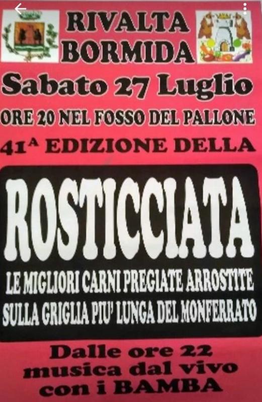 La Festa della Rosticciata, nel fosso del pallone si svolge a rivalta Bormida si svolge il 27 Luglio 2019, dove si possono gustare le migliori carni pregiate