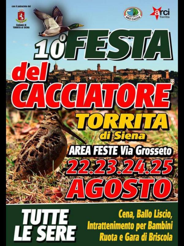 La decima edizione della Festa del Cacciatore a Torrita di Siena si svolge dal 22 al 25 Agosto 2019