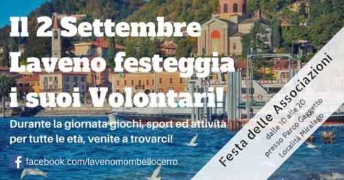 Domenica 02 Settembre presso Parco Gaggetto - Loc. Miralago a Laveno, avrà luogo la Festa delle Associazioni. Per una giornata intera, ogni associazione avrà la chance di promuovere la propria attività e far conoscere il proprio impegno sociale che spazia tra i vari campi di beneficenza e volontariato, ma anche arrivando a trattare ambiti di carattere culturale o sportivo. Durante la festa non mancheranno musica, giochi per i più piccoli punti di ristoro e tante altre attività. Al termine della giornata l'obiettivo comune sarà una raccolta fondi da dedicare al territorio.