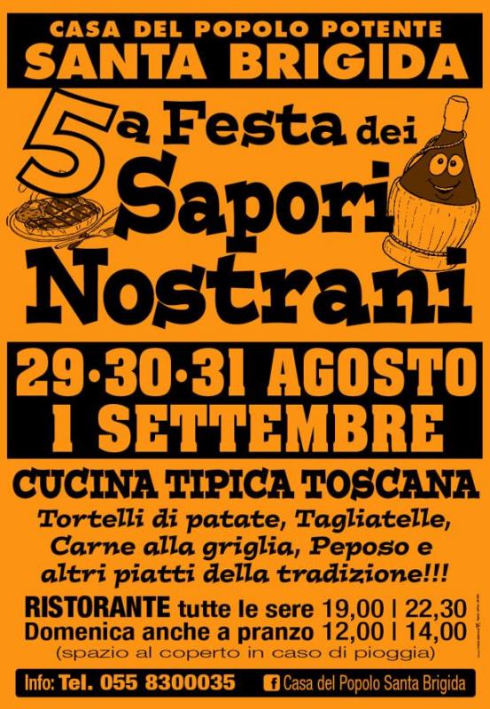 La quarta edizione della Festa dei Sapori Nostrani si svolge a Santa Brigida di Pontassieve (Fi) dal 29 agosto al 1 settembre.