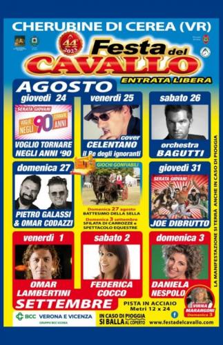 La 44a edizione della Festa del Cavallo a Cherubine di Cerea si svolge dal 24 Agosto al 03 Settembre 2023.