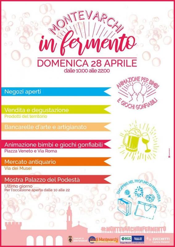 A Montevarchi in provincia di Arezzo si svolge nella giornata di Domenica 28 Aprile 2019 la festa Montevarchi in Fermento dalle 10.00 alle 22.00.