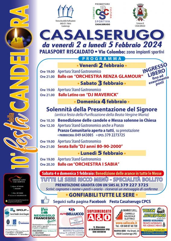 A Casalserugo in provincia di Padova si svolge dal 2 al 5 Febbraio 2024 la 10a edizione della Festa della Candelora.