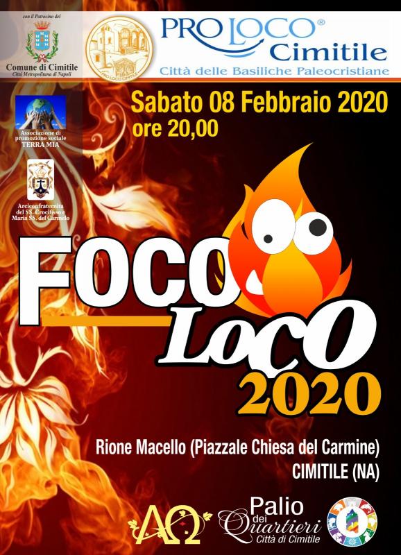 Foco Loco: tipico fucarone o faló di buon auspicio per l’anno che è iniziato, accompagnato da pasta e patate, grigliata di salsiccia, noglie sotto cenere, patate sotto cenere, vino, birra, tammorre di musica popolare e balli tipici.