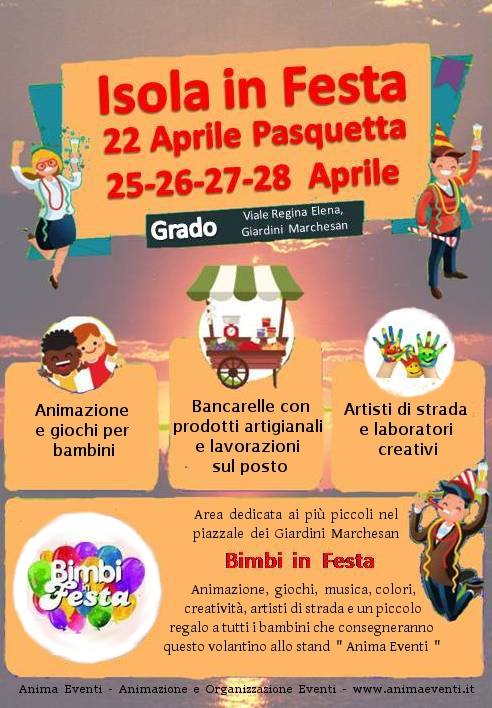 A Grado in provincia di Gorizia si svolge nei giorni 22, 25, 26, 27, 28 Aprile 2019 la manifestazione Isola in Festa.
