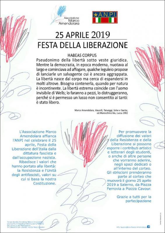 Oggi 25 aprile riflettiamo sui valori di democrazia e libertà attraverso le iniziative che punteggeranno questa giornata, in cui l’A.N.P.I. di Salerno sarà affiancata dall’ Associazione Marco Amendolara