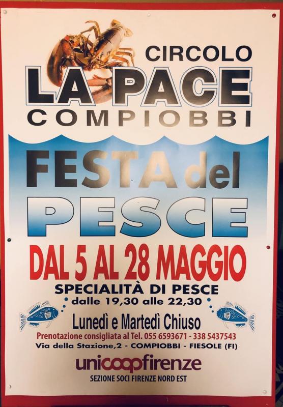 Per gli amanti del pesce ritorna l'appuntamento con la Festa del Pesce dal 5 al 28 Maggio 2023, dal mercoledì alla domenica vi aspettiamo per cena dalle 19:30 per degustare ottimi piatti di pesce Per prenotare contattare lo 0556593671