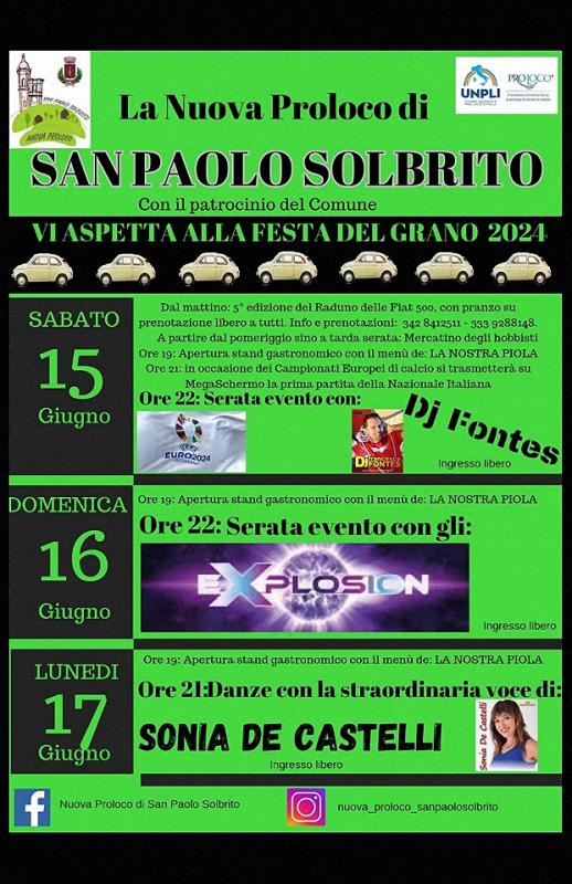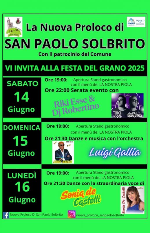 A San Paolo Solbrito in provincia di Asti si svolge nei giorni dal 14 al 16 Giugno 2025 la nuova edizione della Festa del Grano.