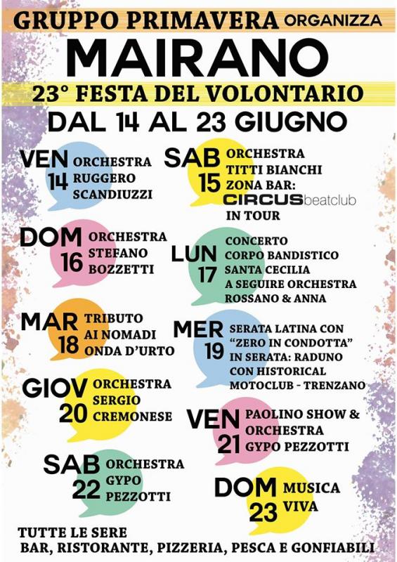 La Festa del Volontario a Mairano (BS) si svolge dal 14 al 23 Giugno 2019