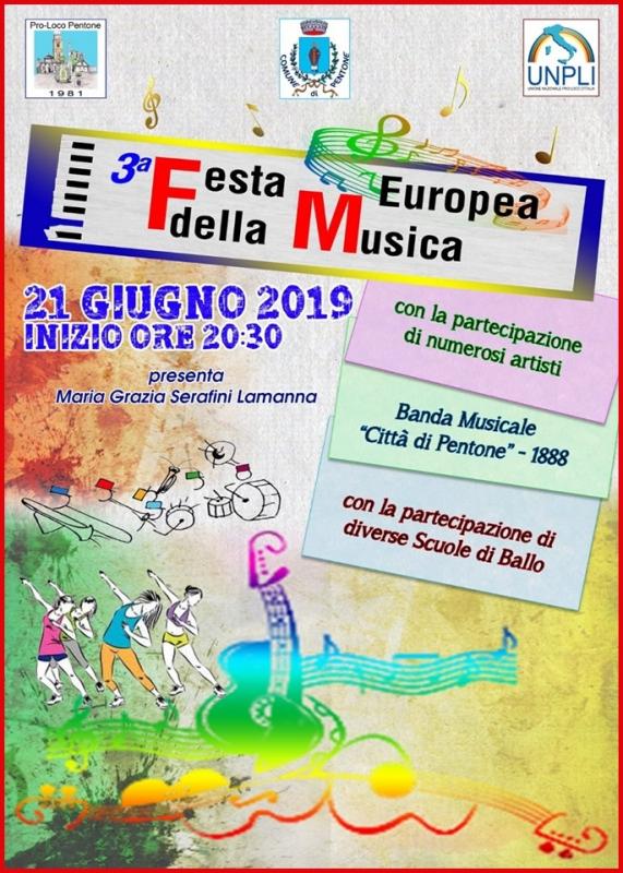 A Pentone in provincia di Catanzaro si svolge nella giornata di Venerdì 21 Giugno 2019 la terza edizione della Festa Europea della Musica.